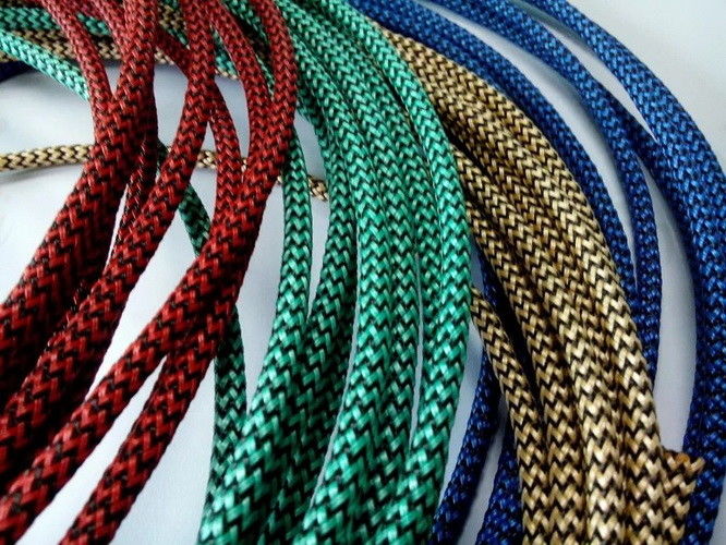 Braided polyester sleeving made from PET monofilament and used in applications requiring abrasion and cut-through resistance. Available in a 125°C standard polyester, flame retardant polyester, nylon, halar and combination braids.